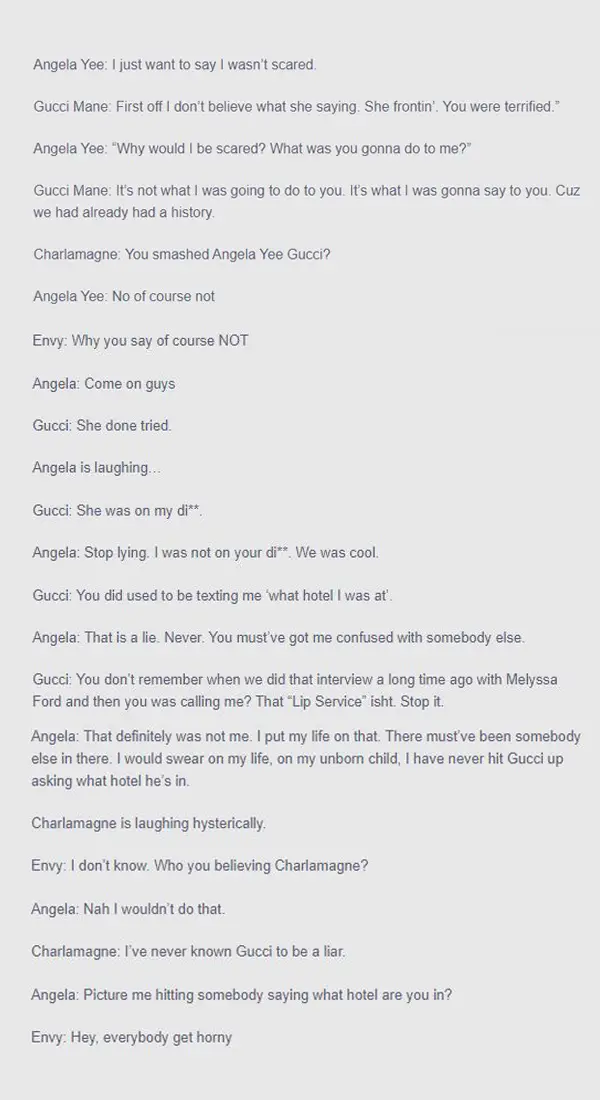 Caption: Gucci Mane claims that he had a history with Angela Yee in an interview on The Breakfast Club 2016. Published on Dec 16, 2016