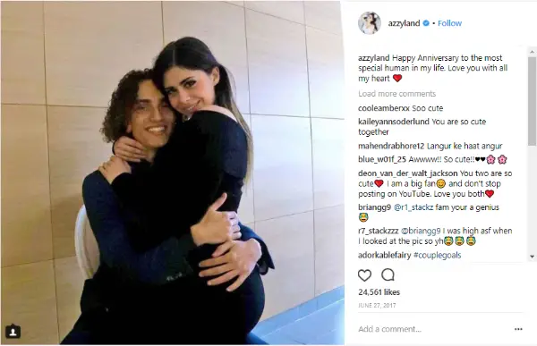 The couple started dating back in 2016. They celebrated their anniversary back in June (2017), and Azzy posted a picture of her sitting on her boyfriend's lap while he had his hands wrapped around her.