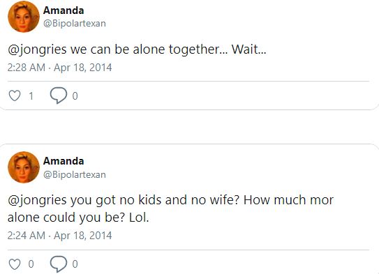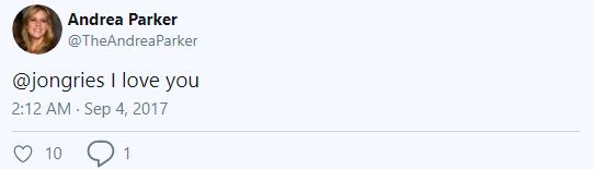 Andrea did not Tweet back to this, but most of her fans agreed to Jon Gries. The television actress finally said "I Love You" to Jon, but it was in response to a separate tweet after almost 2 years. Take a look: