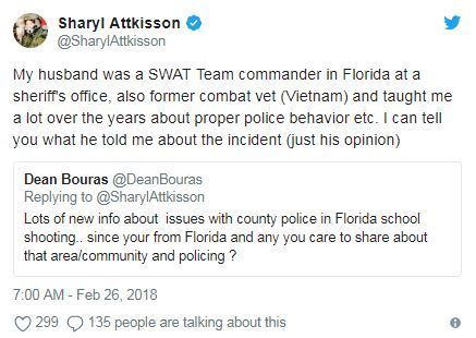 Sharyl tweeted again In February 2018, this time stating her husband's great deed in the Vietnam war and also claimed that he taught her many important police behavior.Â